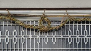 思いついて、玄関のしめ縄を「とうかげんマーク」風に飾ってみた。
